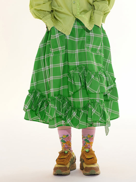Tntntutu Skirt | Floral Checkered Skirt | Ruffled A-Line Skirt