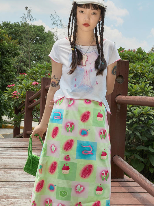 Harajuku Skirt Colorful A-line Skirt Dopamine Prints Skirt