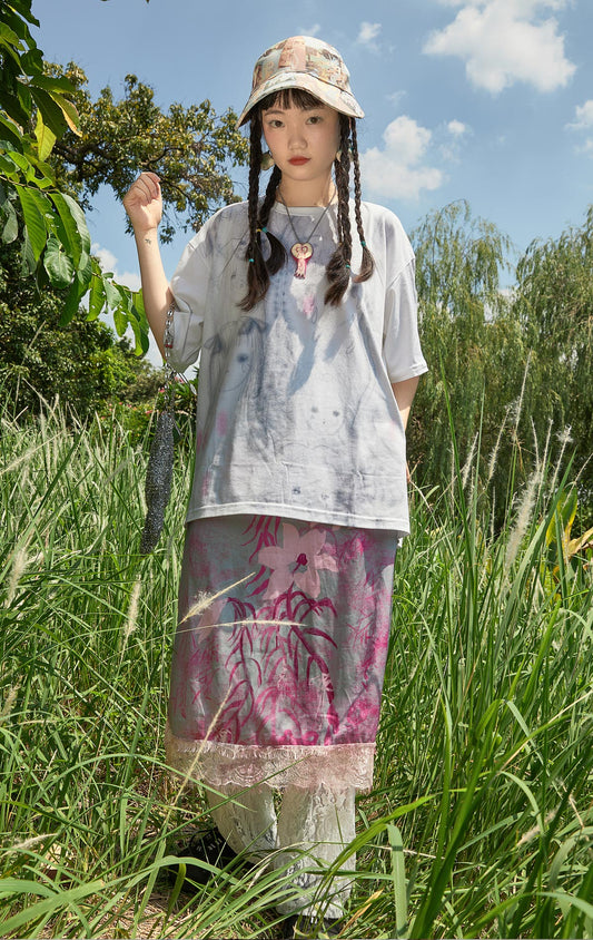 Harajuku Skirt Vintage Feel Lace A-line Skirt Satin Skirt Casual Skirt