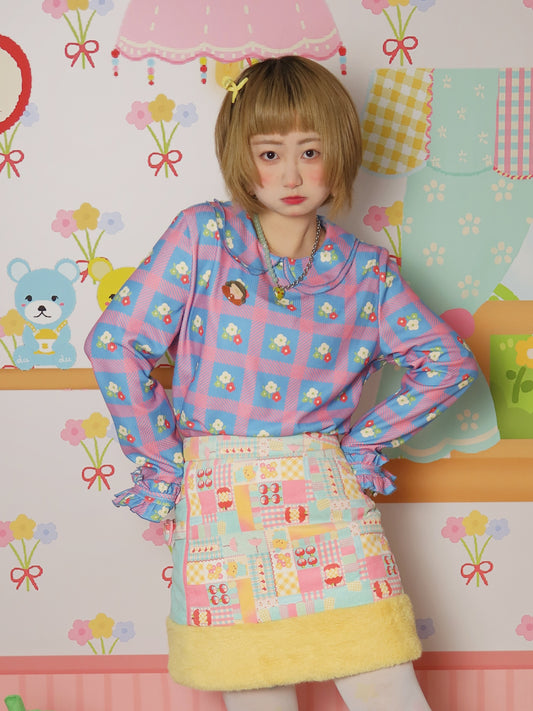 Decora Kei Mini Skirt – Pink Blue Patchwork