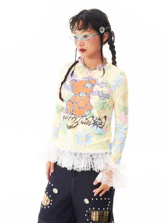 sillysis - Kawaii Bear Lace Tee