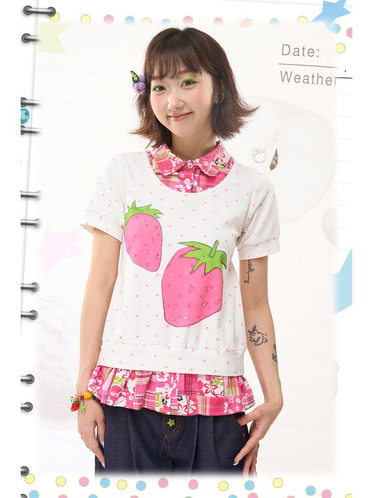 FRUITS Strawberry Polka Dot Tee | Patchwork Layered Two-in-One Tee