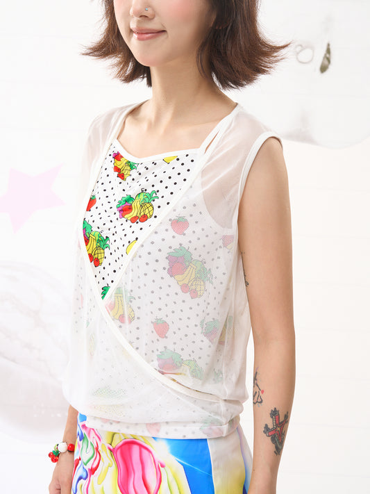 FRUITS Fruit Dot Mesh Tank | Dual-Layer Vintage Y2K Vest