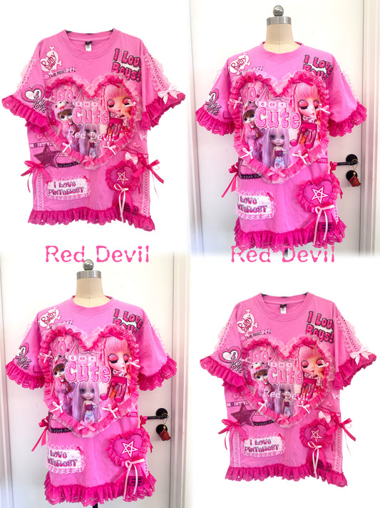 RedDevil Kawaii Puff Short Sleeve Top | Harajuku Decora Lace Heart Tee