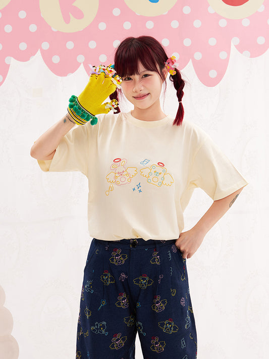 NIKKOU Cute Short Sleeve Tee | Kawaii Embroidered Cotton T-Shirt