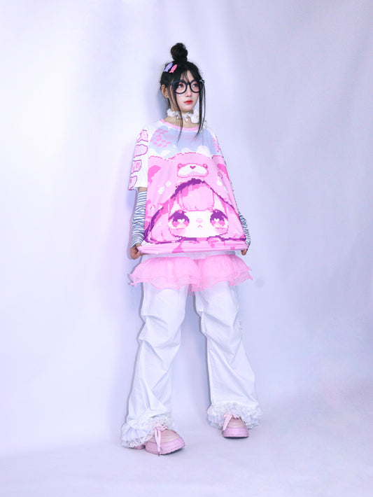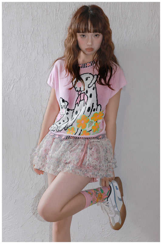 Tntntutu Pink Dalmatian Knit T-Shirt – Kawaii Harajuku Soft Girl Tee