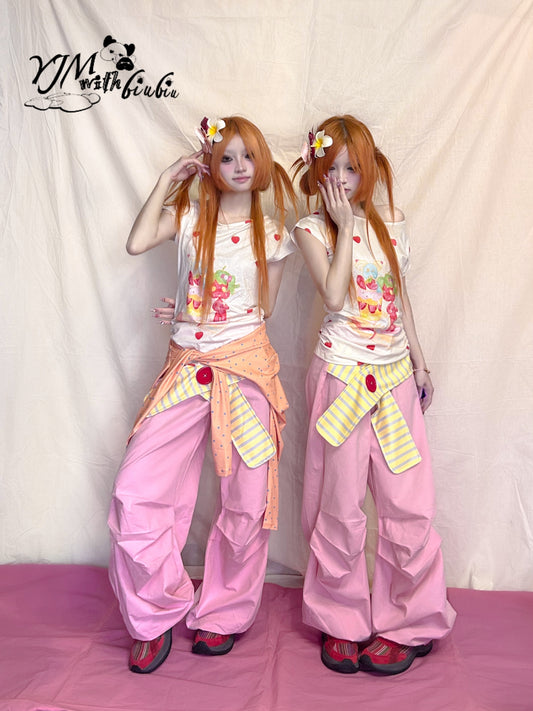 YJM with biubiu Strawberry Slim Fit T-Shirt – Y2K Harajuku Kawaii Style Tee
