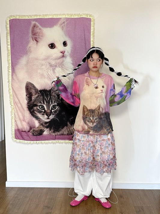 Kawaii Vintage Shirt – Cat Print Long Sleeve