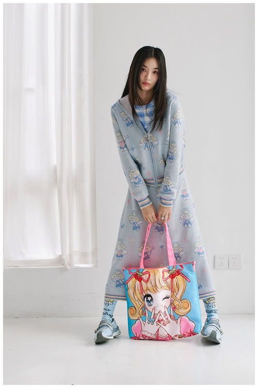 Harajuku Jacket Cartoon Prints Jacket Leisure Loose Jacket Big Pocket Jacket