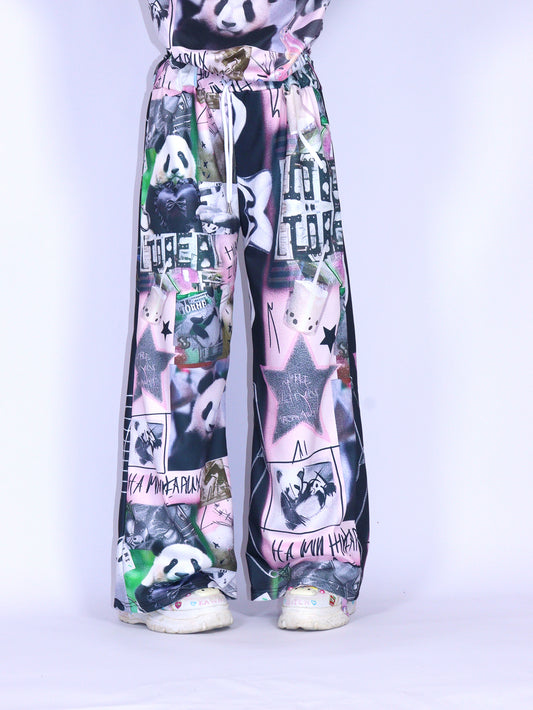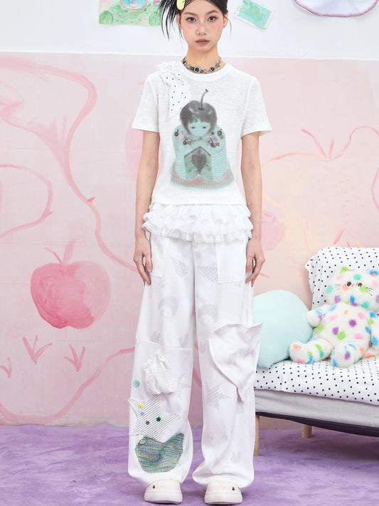 Moon Meadow – Harajuku Wide-Leg Pants with Kawaii Patchwork Details