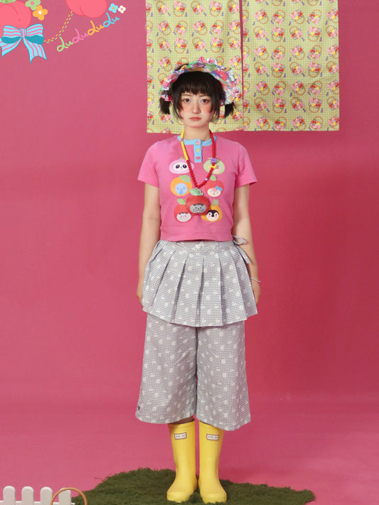 Kawaii Cropped Pants – Plaid Cherry Cutout
