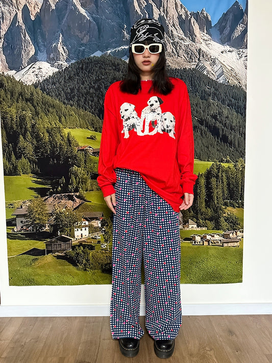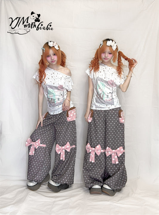 YJM with biubiu - Polka Dot Bow Loose Trousers with Large Pockets