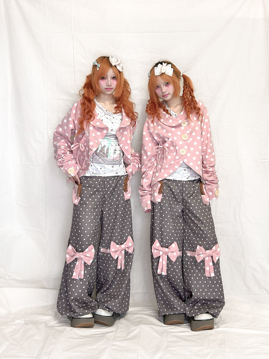 YJM with biubiu - Polka Dot Pleated Long Sleeve Short Jacket