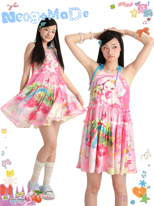 NIKKOU Pink & Red Sleeveless Jumper Dress | Harajuku Embroidered Dress