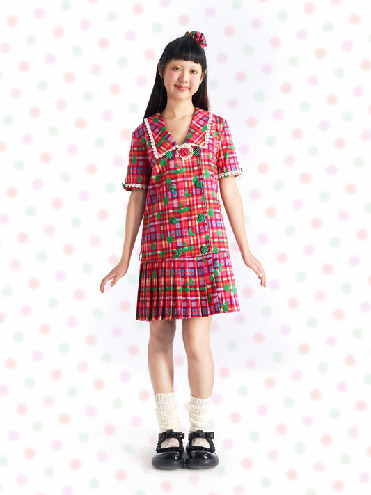 SemenCoicis Vintage Puff Sleeve Dress | Kawaii Embroidered Jacquard Check Dress