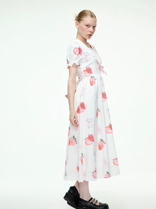 Meugler - Kawaii Red Mushroom & Berry Plaid Ruffle Midi Dress