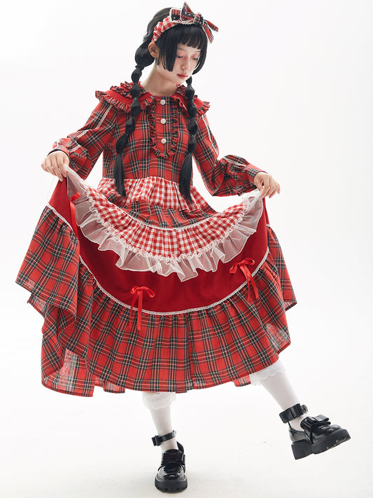 SOS MEME CLUB - Kawaii Red Polka Dot Christmas Dress Vintage Lolita Long Sleeve