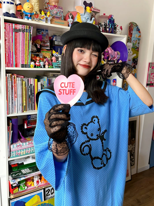 BunnyBunnyGun - Oversize T Dress Blue Polka Dot Sailor Collar