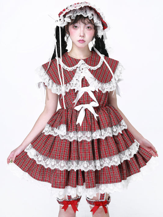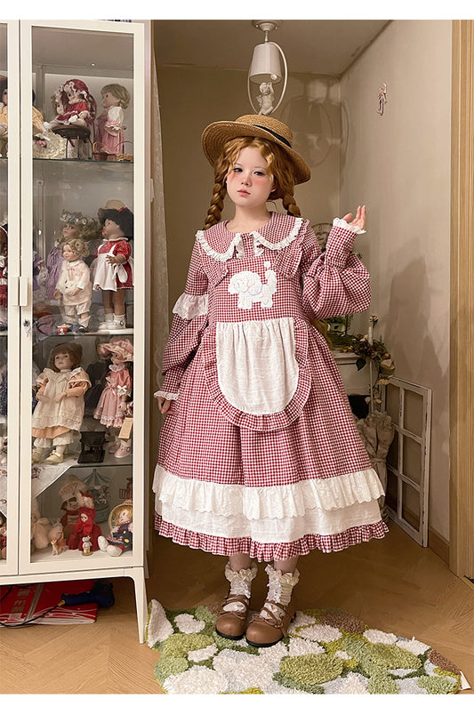 Labeau - Kawaii Puppy Plaid Suspender Dress Cotton