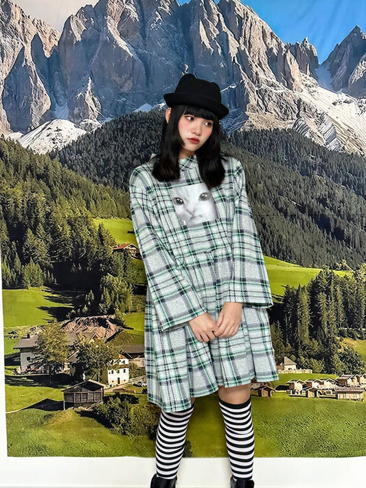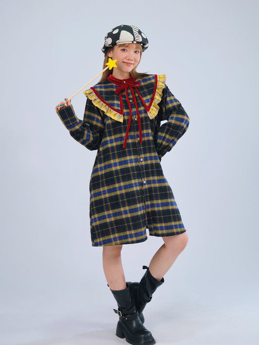 MeowMeow Bug - Vintage Plaid Bow Shirt Dress