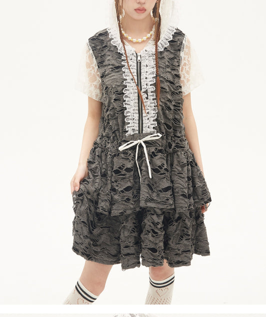 SOS MEME CLUB - Y2K Punk Gray Cake Dress