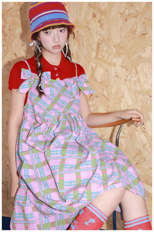 Tntntutu - Kawaii Pink Plaid Bow Strap Dress