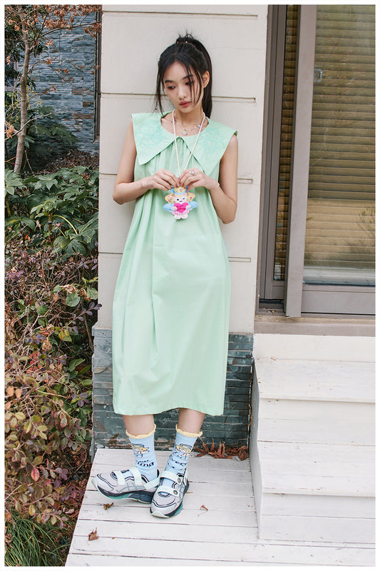 tntntutu Green Dress | Angel Embroidery Sleeveless Dress | Doll Collar Summer Dress