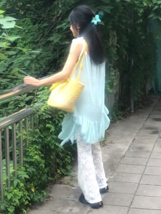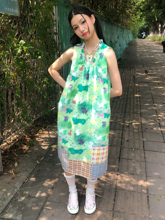 Harajuku Dress Green Sleeveless Dress Hand-painted Print Dress