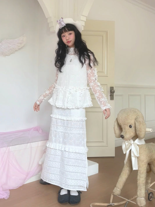 Daytoday Everyday Institute Harajuku Vest Bow Embroidery Skirt Layered Dress