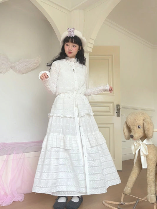 Daytoday Everyday Institute Harajuku Dress Bow Embroidery Patchwork Tiered Dress Cardigan