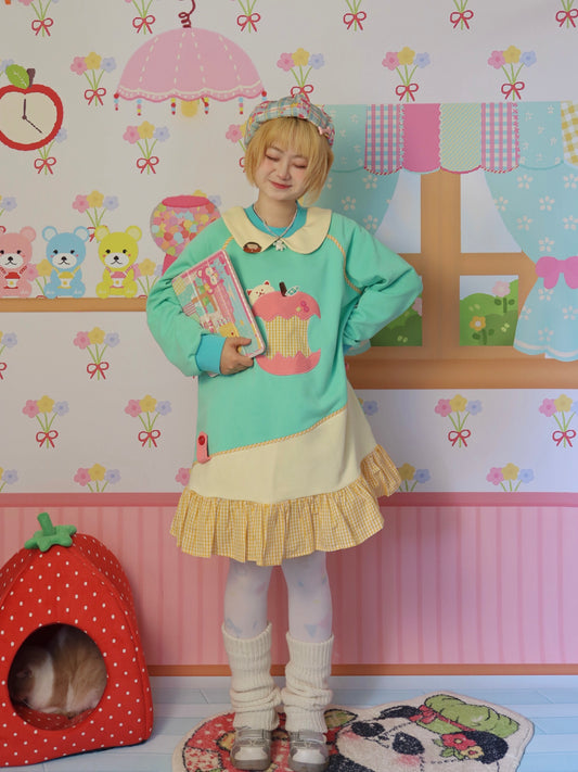 Decora Kei Sweatshirt Dress – Apple Embroidery