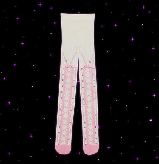 NIHON KIDS - Decora Kei Pink Ribbon Velvet Tights