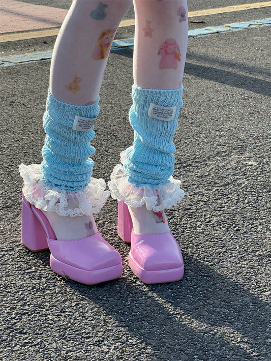 shishihshop – Kawaii Ice Cotton Lace Leg Warmers with Print