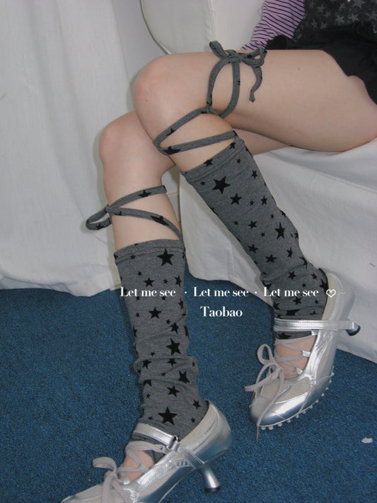 LET ME SEE - Spicy Star Lace-Up Calf Socks