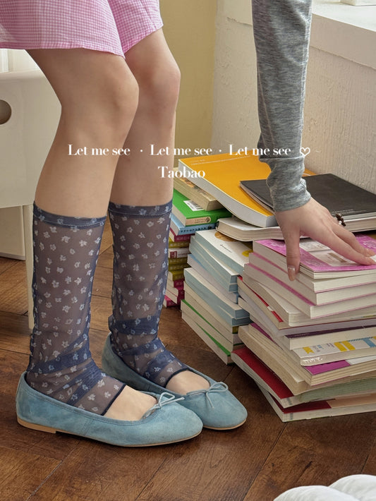 LET ME SEE - Kawaii Sheer Floral Footless Mid Socks