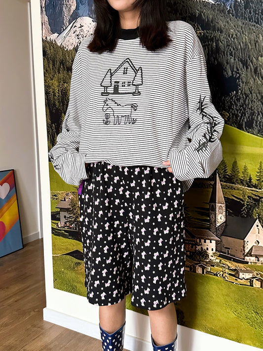 FRUITS Cake Illustration Shorts | Lace-Trimmed Culottes