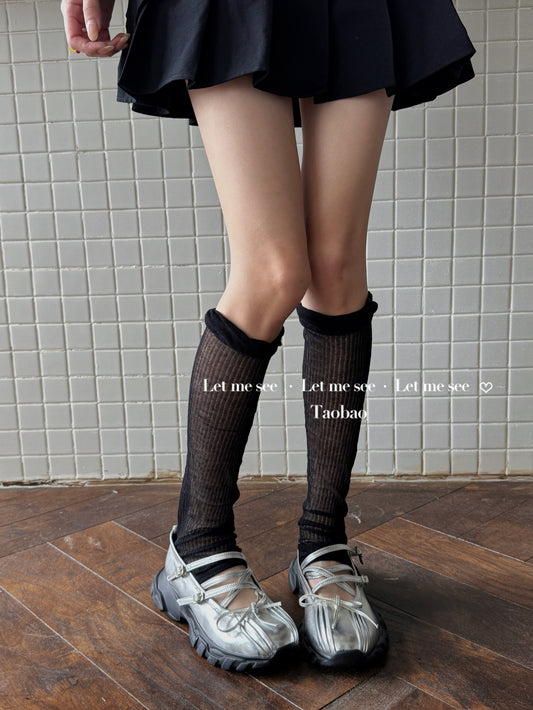LET ME SEE - Kawaii Sheer Floral Footless Mid Socks