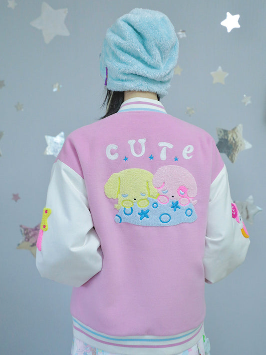 Hashtag DDD - Kawaii Padded Pink Baseball Jacket