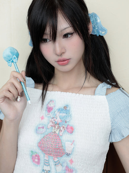 Hashtag DDD - Kawaii Off-Shoulder Shirred Strap Tee