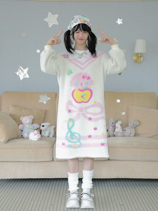 Hashtag DDD - Kawaii Beige Faux Fur Knit Dress