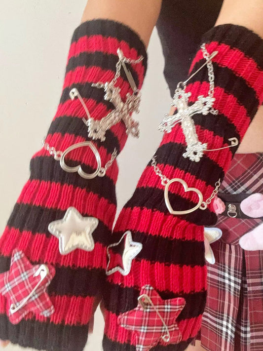 Hidden - Decora Knit Fingerless Gloves for Kawaii Sweet Girls