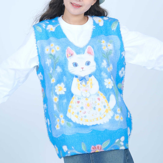 MeowMeow Bug – Decora Kei Fuzzy Cat Wreath Knit Vest