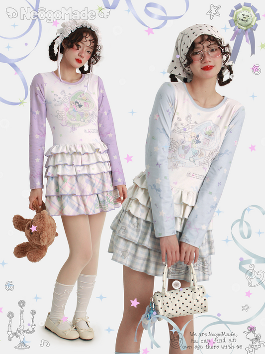 tntntutu - Bunny & Floral Plaid Slim Fit Layered Top