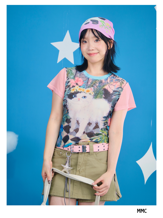 MeowMeow Bug - Decora Kei Cute Cartoon Mesh Top