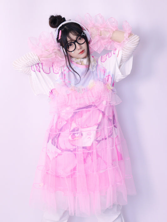 LEERROO Dreamcore Mesh Dress | Layered Midi Slip Dress with Matching Sleeves