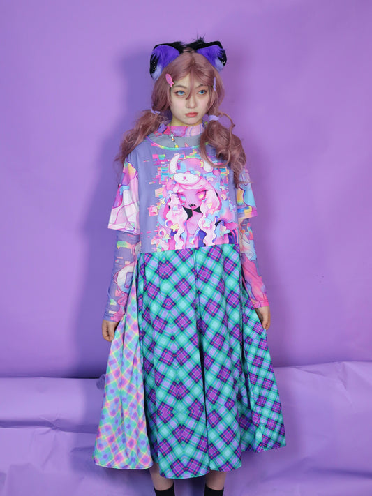 Leerroo Decora Sweatshirt Birthday Cake Shirt Bright Plaid Top