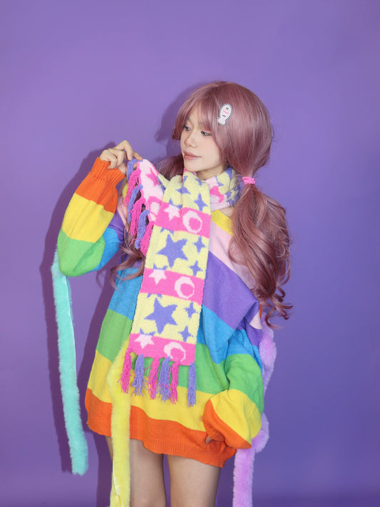 Leerroo Decora Scarf Star Kintted Scarf Winter Bright Scarf