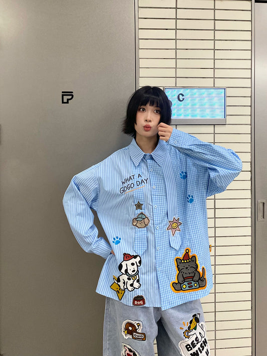 BIBULU - Kidcore Embroidered Plaid Shirt