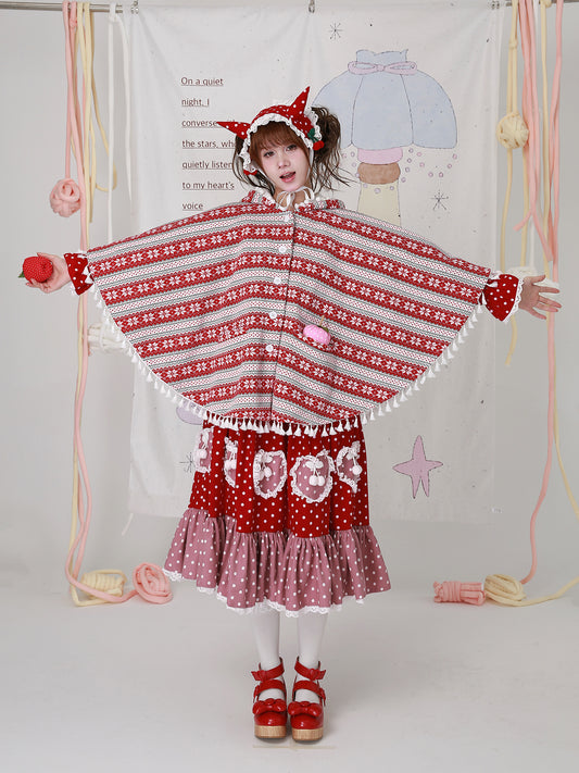 SOS MEME CLUB - Kawaii Red Christmas Cape Vintage Showa Lolita Knit Shawl Coat