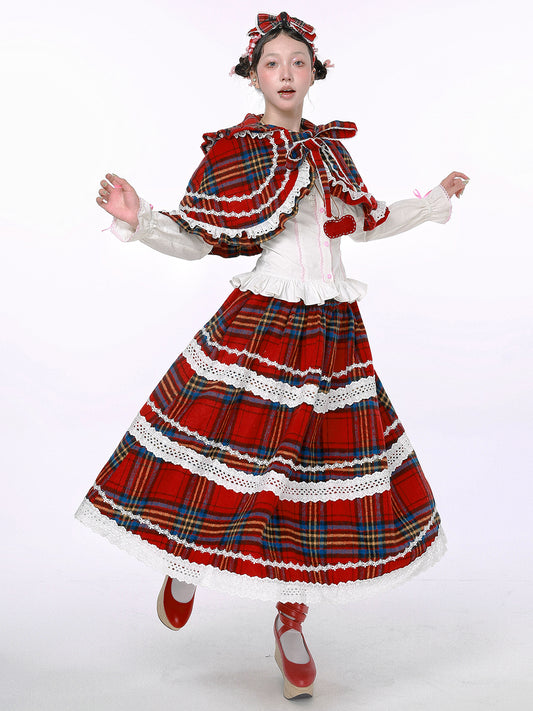 SOS MEME CLUB - Showa Retro Christmas Red Plaid Skirt